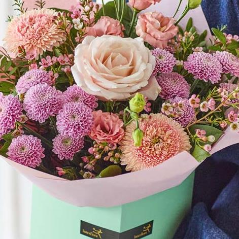 A soft pastel arrangement presented in a gift box. Gentle tones and fresh flowers arranged with care, ready to deliver as a thoughtful, uplifting surprise.