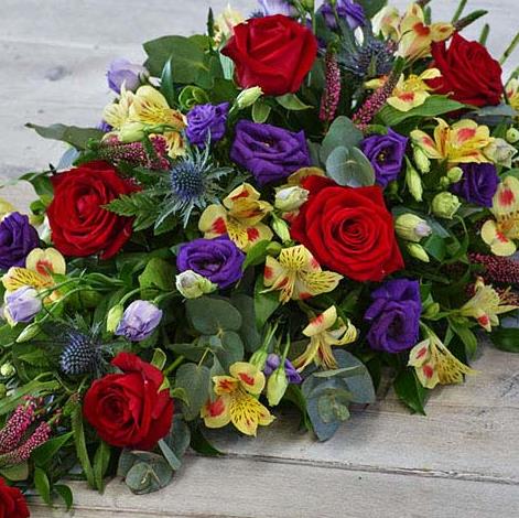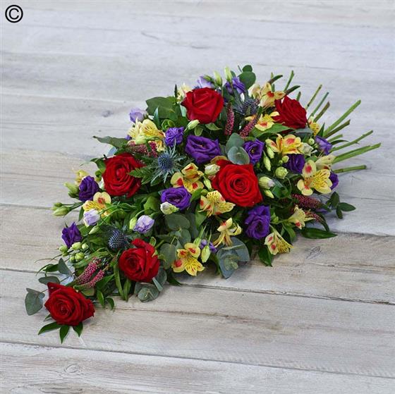 This teardrop shaped arrangement features blooms in a beautiful assortment of colours, including roses, lisianthus and alstroemeria.